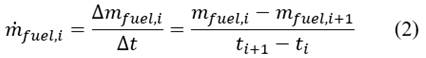 ) consumed by the engine at a given time (∆t), as shown in Eq. (2). A Bosch mass airflow (MAF) sensor was used to measure the mass airflow rate (