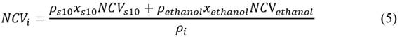 By isolating the NCV i , one obtains Eq. (5) as a function of the volume fraction of the fuels (x i ):