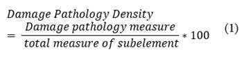 The initial procedure is the identification of the sub-elements belonging to each element, and through visual inspection, the associated damage pathologies are detected, as shown in Table 6. Then, the total dimension measurements of the sub-elements and the deterioration of the measurement in the same sub-elements. This way, it is possible to quantify the damage density for each pathology identified with Eq. 1.