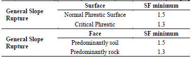 Table 2: Safety Factors of the general slope and the slope between berms rupture [13]