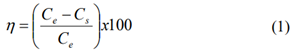 Where: ɳ = removal in percentage, Ce = average concentration of wastewater inlet, Cs = average concentration of treated wastewater outlet.