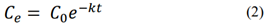 The behavior of residual water obeys a first order kinetic reaction [23]. A piston flow will be considered for both types of managed wetlands, since according to Rodríguez-Miranda et. al., [27] FFCW can behave better as a plug flow reactor in terms of organic matter removal according to the HRT that is used, similar to the one that is to be used in this research; eq. (2):