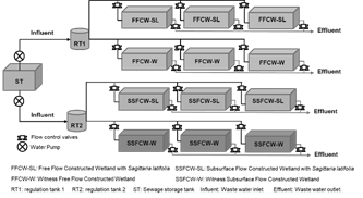 Table 2: Removal efficiency in free-flow constructed wetlands (FFCW) and subsurface flow constructed wetlands (SSFCW) with and without Sagittaria latifolia. Average values (N=20).