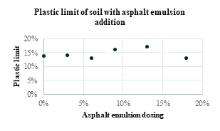 Figure 3: Trend graph of the Plastic Limit according to the asphalt emulsion dosage.
