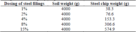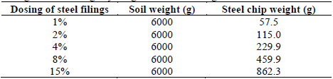 Table 2: Dosage of steel filings by weight for CBR testing of soils.