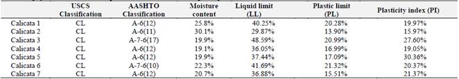 For the physical characterization of the samples obtained, moisture content tests, granulometric analysis by sieving and hydrometer, determination of the liquid limit, determination of the plastic limit and plasticity index were performed. The samples were also subjected to mechanical tests such as the modified Proctor compaction test and the soil CBR test.
