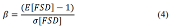 Where E[FSD] is given by equation (3), and σ[FSD] is the standard deviation of FSD. It should be clarified that equation (4) corresponding to the reliability index that is applied to the FSD formula, in which the independent variables have a behavior that adjusts to the normal Probability Distribution Function (PDF).