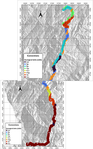 Figure 1: Geological Road corridor map Tunja- Guateque from PR0+000 to PR97+000.