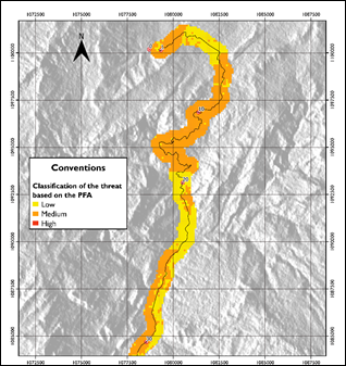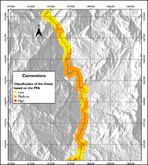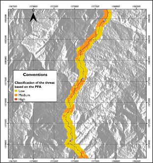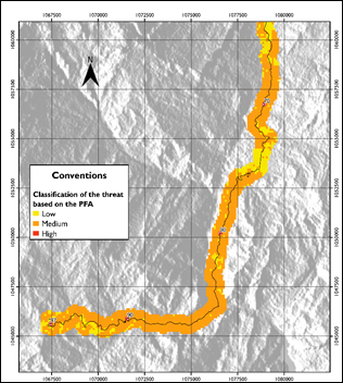 Figure 5-c: Distribution of the Tunja-Guateque road corridor threat from the PR55+000 al PR70+000