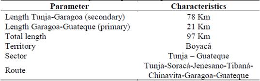 Table 1: Characteristics of the Tunja-Guateque road, department of Boyacá