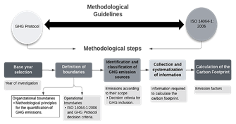 Fig. 1 shows the graphical representation of the methodological steps to be followed to calculate the carbon footprint, with their respective criteria as proposed by the GHG Protocol and ISO 14064-1:2006.