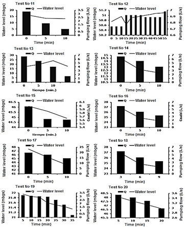Tables 6 and 7 show the results of the validation of the models for depletion (eq. 3) and transmissivity (Eq . 4), by comparing the errors, mean absolute error (MAE) and mean error (ME), between the calibration and validation stages, using a second set of data. It is observed in both cases that there is an increase in errors between the results of the observations and the model, therefore the amount of data to perform the calibration-validation adjustment should be increased by performing a greater number of field tests.