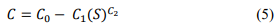 Where C0 =1 and C1 and C2 are the fit coefficients of the model. Differentiating eq. (5) and substituting it into eq. (2), we can finally arrive at eq. (1), which in its extended form appears as eq. (6).