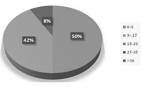 The sample is made up of 3 nurses of the Emergency Departament, 1 First degree Specialist in Allergology, 2 Dental Practitioner and 6 General Practitioner. In the course of the research, 25% of the sample under study developed their activity during a 24-hour working day and the rest 8 hours per day. Fig 2 shows the years of experience in the current job.