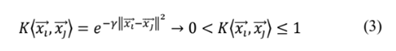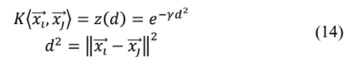 The Kernel function is a powerful tool that can be used to transform non-separable categories into separable ones. One well-known example is the Gaussian Kernel, which can map finite-dimensional features onto a space characterized by an infinite number of dimensions [10]. This transformation is achieved by calculating the Euclidean distance between the Support Vectors xi, which involves performing inner product operations: