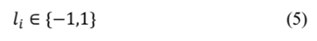 The class labels are defined as 1 for Class 1 and -1 for Class 2, indicating that labels belong to the set {-1,1}: