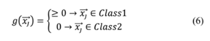 For classification purposes, the hyperplane g is utilized as the input for the sign function: