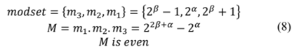 Based on the previous approaches, a new objective can be achieved: constructing an SVM classifier using RNS when the SVM is modeled in a modulo-M ring. The initial step in this approach is to select a suitable set of moduli. Using moduli that are powers of two is often a suitable choice to simplify the hardware implementation: