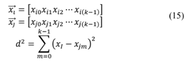 This function has its domain and range in real numbers, but they can be mapped into integers by determining their respective bounds. The first step is to find the bounds of the domain. Essentially, d2 represents the Euclidean distance between two k-dimensional vectors xi and xj: