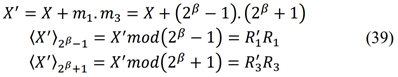 In hardware implementations, several techniques are available to execute operations in parallel based on modular arithmetic [11]. For instance, considering an integer number X that can be decomposed into a set of residues {x1, x2, …, xn} with respect to moduli set {m1, m2, …, mn}. It is essential to note that each modulus mi is coprime with each other modulus mj. Similarly, when this procedure is applied to an integer Y, the following system can be defined: