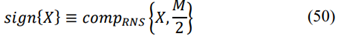 Implementing the sign function, which involves comparing a number with zero to determine whether it is less than, greater than, or equal to zero, is not a straightforward task in RNS. However, a variant of the LPN algorithm [13] that is specifically designed for the chosen modulus set can be utilized to accomplish the goal of performing the comparison in RNS.