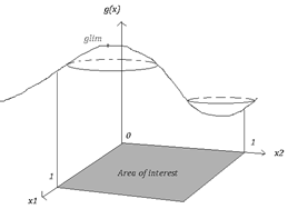 To approximate the value of g lim , the absolute value of g can be evaluated at q randomly selected points within the area of interest. By comparing these evaluations, the maximum value can be determined, yielding the value of g lim :