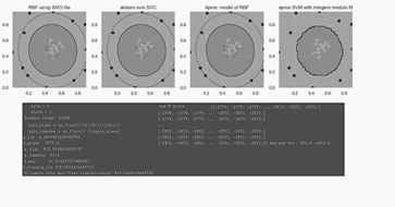 The previous methods discussed in the sections were implemented to demonstrate the feasibility of SVMs with Radial Basis Function in both modulo-M and RNS representations. The implementation was carried out using the Python programming language along with various libraries such as Numpy, sklearn, and matplotlib. The SVM training method used was a simplified SMO-algorithm-based approach (SMO-lite).