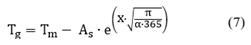 Where Tm (°C) is the average annual temperature of the air, As (°C) is the difference between the maximum and minimum annual temperature value of the air, X (m) is the depth of the ground and α (m2/s) is the thermal diffusivity of the ground. At the campus, the Tm is around 17 °C and an absolute maximum and minimum annual values of 28.8 °C and 5.4 °C, respectively [25], with a depth of 3 meters and an α of 6.77·10-7 m2/s, previously defined by [23].