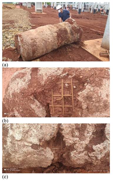 Among all caissons executed, nine were fully excavated. Fig.1 shows an example of caissons that was fully excavated and extracted from the ground for visual assessment. In total, nine caissons were partially excavated (Table 1).