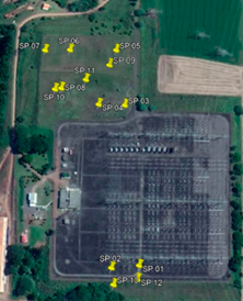 For the substation extension, thirteen Standard Penetration Test (SPT) boreholes were drilled at the locations shown in Fig.4. The number of boreholes was determined according to our national standard (NBR 8036 [14]), considering the projected area of the structure. The borehole locations were randomly selected. The boreholes were advanced until reaching the impenetrable to percussion level, which occurred at depths of approximately 2.55 m to 13.10 m, for SP 12 and SP 09. Fig.5 shows the soil profile according to the SPT tests.
