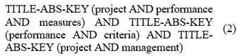 Afterwards, through eq. (2), they were obtained 498 research works with 300 terms associated with measures of projects performance, from which were established as valid, those with a minimum frequency appearance of 5 occurrences (in a binary count, where it was counted the appearance per document and not the number of occurrences per reference), revealing 47 filtered terms.