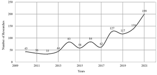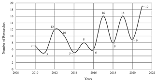 According to Fig. 1, it can be established that publications carried out on this field show a positive growing trend, what demonstrates a high interest; however, as Fig. 2 illustrates, the researches corresponding to the relation between servant leadership and projects performance present an oscillatory and scarce trend regarding number of published papers; such behavior can be interpreted as a research opportunity; actually, a review conducted by Eva et al. achieves the conceptual differentiation of the servant leadership among the literature and another seven variants of leadership [12,34].