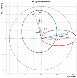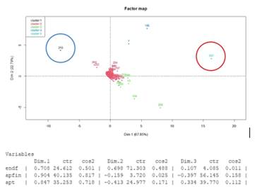In order to group the indicators into factors, a principal component analysis was performed in R software with the FactomineR package.