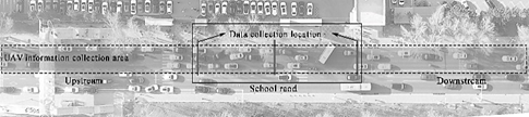 Rangefinders and unmanned aerial vehicle (UAV) equipment are used to collect data. The selection of data collection locations follows the principles: (1) No shooting angle or blocking problem, and the scanning range is large enough. (2) Significant changes in traffic status, e.g., upstream and downstream junctions with the school road. (3) Worst traffic areas, e.g., parking concentration areas. Fig. 1 illustrates our selected data collection locations. And the school road is the study area. The approximate length of the road is 1,000 meters, ranging from 0-400 meters upstream, 400-700 meters for the school road, and 700-1,000 meters for the downstream.