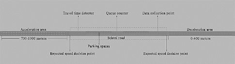 An important part of urban traffic travel is school commuting. The school has always been used as an important traffic generator and attraction point, crowding effect caused by private car pick-ups and drop-offs adds to school road traffic problems [1]. The number of private cars has a serious impact on the school road traffic status [2]. As the requirements of on-street parking, the resulting drive-in and drive-out process creates significant disruption to road traffic flow. This has resulted in a reduction in the capacity and worse evaluation indicators [2]. It also threatens student travel safety [3]. Hence, school roads have become a pain point for urban traffic during commuting hours. There is a serious need for research on the traffic characteristics of school roads.