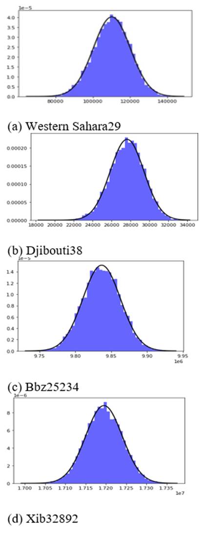 Results from a subset of the tested data sets are displayed in the table below. Statistics for each of the three the tests are shown for each data set. The test statistic or p-value is displayed in bold for instances in which the null hypothesis is rejected. For example, the null hypothesis for the CH150 data set is rejected on account of Jarque-Bera and D’Agostino tests. In Table 2 we see no failures to reject the null hypothesis for problems exceeding 1000 vertices. Consistent with our theory, we see multiple rejection of the null hypothesis where the number of vertices drop below 225.