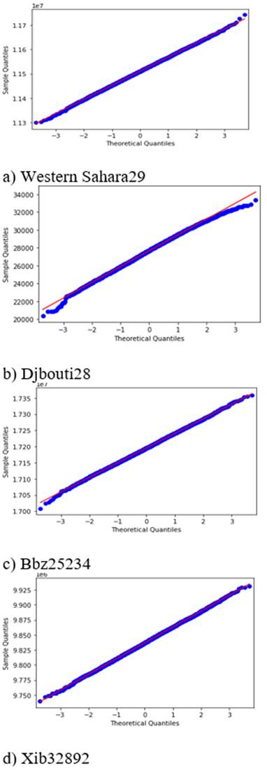 Fig. 1 display histograms of the cycle lengths produced through experimentation. While these histograms “look” Normal, statistical testing shows this is not always the case. Results from testing shows that the null hypothesis is rejected for the test problems. This is more easily shown in the Q-Q plots depicted in Fig. 2.