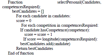 Personnel selection system based on the selection algorithm