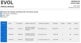 The following Fig. 2 shows the applicants selected by the selection algorithm, these candidates are shown after having made the questionnaire of the work to be applied in this way the most optimal candidates are selected.