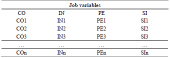 Table 2: Job variables.