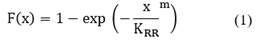 F(x): es la fracción pasante acumulada del material que pasa el tamaño x. m y KRR: Parámetros de distribución y tamaño respectivamente