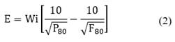Se determinó el consumo de energía para los molinos de la planta en evaluación conocidos como M1, M2, M3 y M4 en un circuito cerrado (ver Fig. 2). La eq. (2) presenta el modelo de Bond para determinar la energía específica de fractura, que simula un circuito cerrado de molienda con una carga circulante de 350%.
