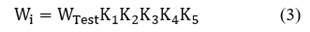 Mediante las relaciones de escalamiento se obtiene el Wi corregido mediante la eq. (3).