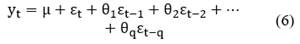 Donde yt es el valor de la serie temporal en un tiempo t, µ es la media de los datos, εt representa el término de error en el tiempo t, donde εt se distribuye de forma normal y presenta homocedasticidad. θi son los parámetros del modelo que determinan los pesos asignados a los términos del error de retraso. Para evaluar el rendimiento del modelo de media móvil comparando los datos calculados con los valores reales de la serie se emplearon las métricas estadísticas que se muestran a continuación. El uso de estas métricas se debe a que proporcionan valores en escala de medición, permitiendo comprender qué tan cerca están las mediciones y las predicciones. Además, son predictores ampliamente empleados cómo métricas del modelo de media móvil.