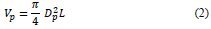 The porous volume "V p " is given by the eq. 2, which was obtained over the unit sample described by the previous eq. 1, furthermore, "D p " is the diameter of the porous [1-3,17].