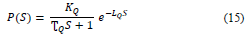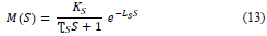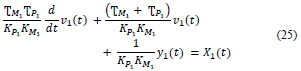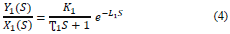 The following eq. 4 gives information regarding the first order transfer function of the flow sensor that was designed to analyze the optimal energy transmission on the studied robotic system. The flow sensor model also helped to get the implicit speed of the designed robotic system, in which the response time "T 1", gain "K 1 " and delay "L 1 "; the flow variable (energy carrier) is the variable "Y 1" and the input variable is given by "X 1". It must be understand that the eq. 4 (also the subsequent eq. 5) are given in Laplace "S" domain that were obtained by experiments, during the dynamic analysis of the system [6-12].