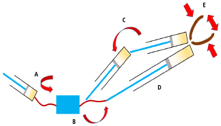 It is expected that this research could be a support for designers of robotic arms or for researchers who are trying to get optimal solutions (by optimal and adaptive algorithms) consequently to be used for the industrial and economical activities in the Latin-American market, because of the Latin-American countries have own reality by agriculture, mining and fishing with the high responsibility to care the environment conditions. In the following Fig. 1 is depicted a robotic arm, in which "A" represents the main energy transmission of the energy carrier over the block "B", which coordinates the first degree of freedom for the robotic system, the second coordination of movement are given by "C" and "D" that get action over the holders of the subsystem "E".