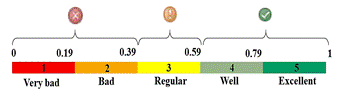 The proposed integral index was calculated arithmetically, using an additive function, which compares the maximum level reached by each of the synthetic indexes with that of the service at the time of measurement. Eq. (1) was used for the calculation.