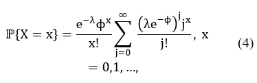 In other words, for fixed parameters λ and ϕ, the probability of random variable N(t) being equal to x at time t is given by (6). Note that, as shown in [25], for the discrete random variable, .