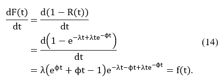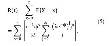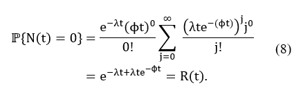 Eq. (8) provides the reliability function obtained from the NTA counting process. Note that R(0) = 1 and